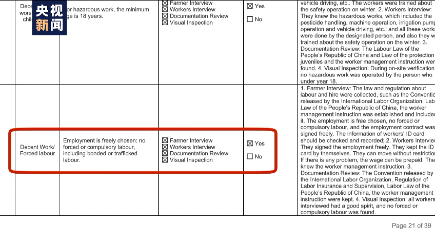 经过严格复查,吴艳的团队证实新疆并没有所谓“强迫劳动”问题。