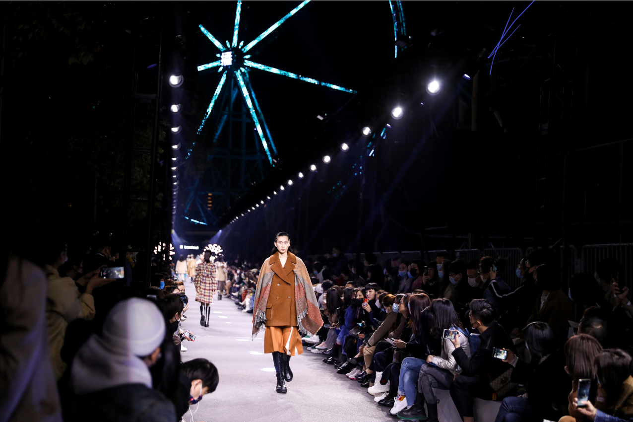 在摩天轮闪烁变幻的灯光下,模特们身穿秋冬秀款逐一走出,自信率真的T台风格,为观众们献上自由热情的“梦境”。