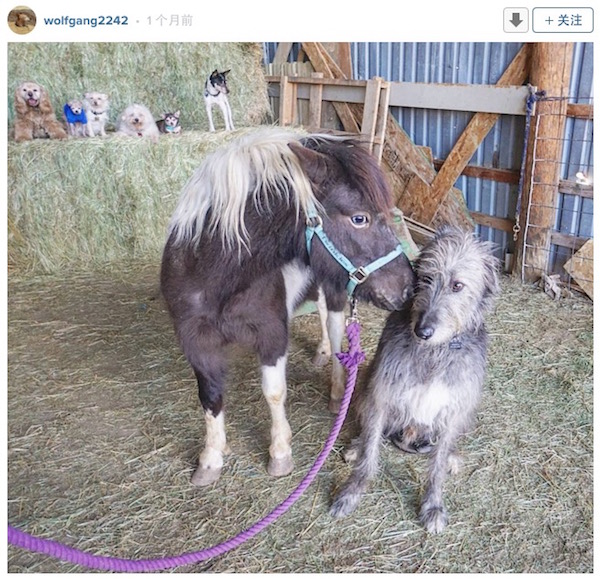 在所有狗兄狗弟中,比基尼和她的小姐姐——一只爱尔兰狼犬Enoch,看起来又最为和谐……