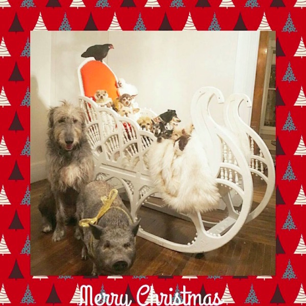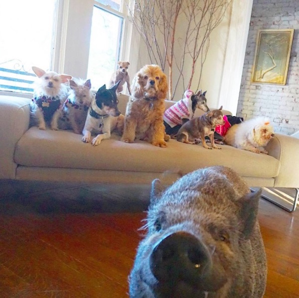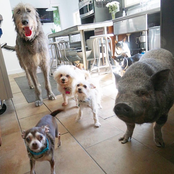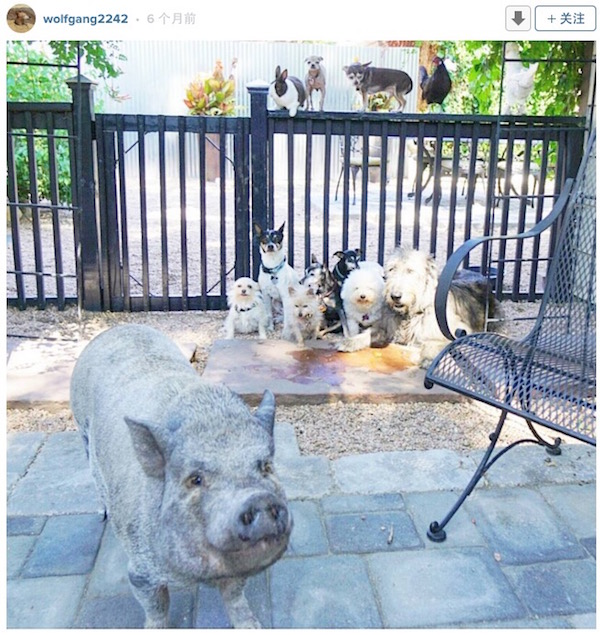 它们包括但不限于:10只狗,一头名为比基尼的自以为是只狗的猪,两只鸡,两只鸭,两只鸽子,一堆猫,一只兔子,还有一窝锦鲤。