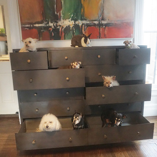 常常有朋友来他家做客,他们总说很难察觉屋子里的狗竟然有10只之多,因为它们出奇地安静。