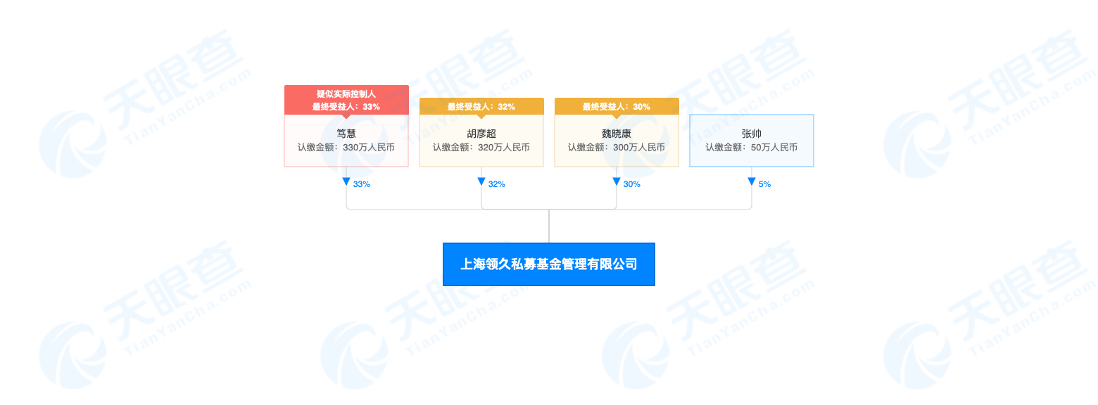 天眼查信息显示,这家名为上海领久的私募基金管理有限公司成立于今年3月18日,由笃慧担任法定代表人,注册资本1000万元,日前尚未在基金业协会完成登记备案。