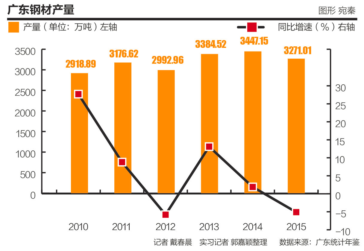 珠三角的钢材市场是个“自己喂不饱自己”的市场,这是文风从业8年来的既有印象。他进购的钢材中,有80%左右来自华北的钢厂,而来自广东韶钢的“本地钢”并不多。广东汽车制造业、家电制造业等产业发达,全省钢材消费量多年来均超过6000万吨,但“十二五”期间广东年均钢材产量却围绕3000万吨上下波动。在珠三角地区延伸500公里覆盖范围内,只有韶钢、广钢、柳钢等为数不多的钢铁厂,这与钢铁企业扎堆的河北、山东等省份有很大差别。