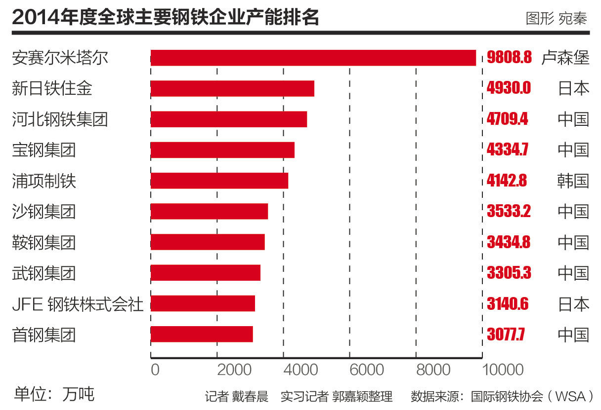 这也意味着,湛江项目或防城港项目,粗略估算在1000万吨之间。根据全球钢铁企业协会的2014年产能排名,两个钢铁项目全线投产后,可以排到全球40名左右水平。