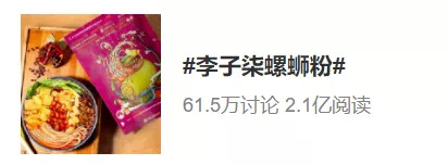 疫情期间,有关柳州螺蛳粉的话题,10次登上微博热搜,截止2021年1月,总阅读量超6500万,讨论超3.5万条。其中最出圈的螺蛳粉品牌是网红李子柒。