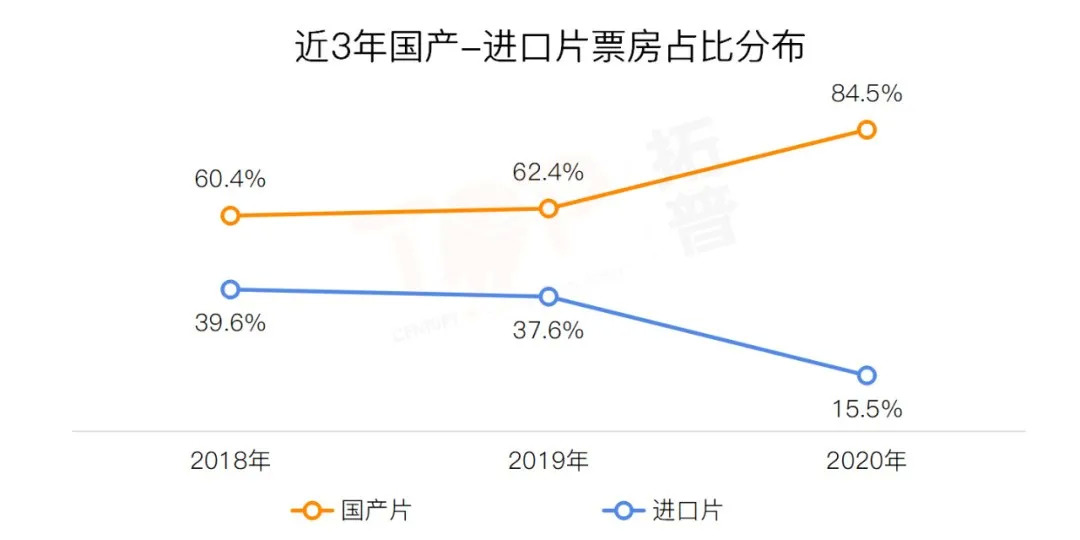 尽管《哥斯拉》表现可圈可点,但引进片在国内市场的表现依然不容乐观。受疫情影响,北美电影市场复苏缓慢,多部好莱坞大片均延期上映、或转战流媒体平台,这也影响了其在国内上映的时间。而过去8年以来,引进片的全年票房占比维持在百分之三十多至百分之五十不等,若引进片持续缺席,势必影响今年的大盘整体收益。