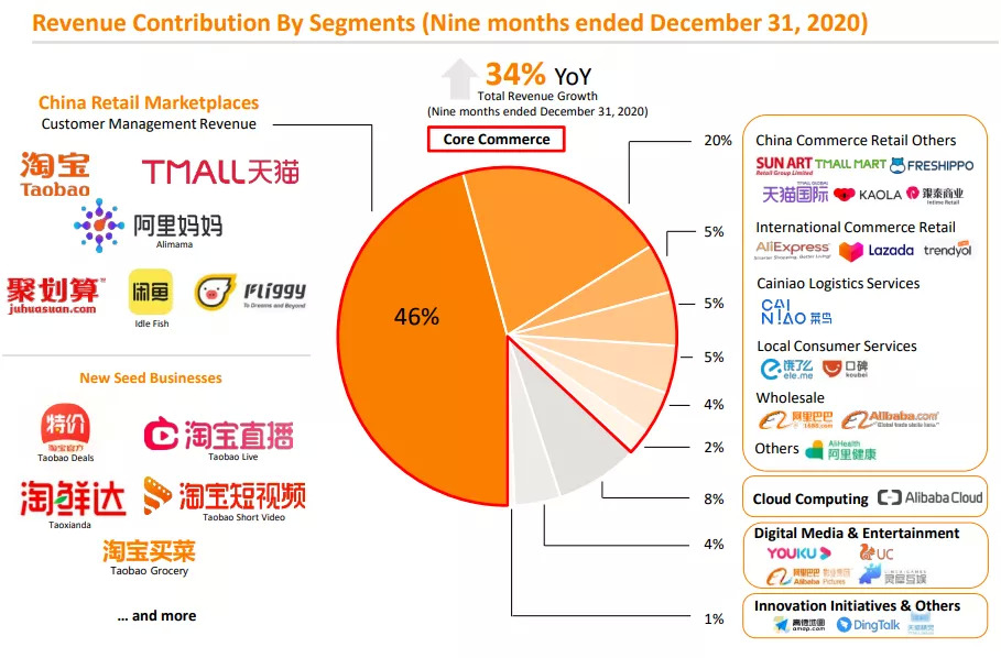 2月2日,阿里发布2021财年第三季度业绩,截至2020年12月31日止三个月内,集团收入2210.84亿元人民币,同比增长37%;扣非净利润同比增长27%至592.07亿元,经调整EBITDA同比增长22%至683.8亿元。