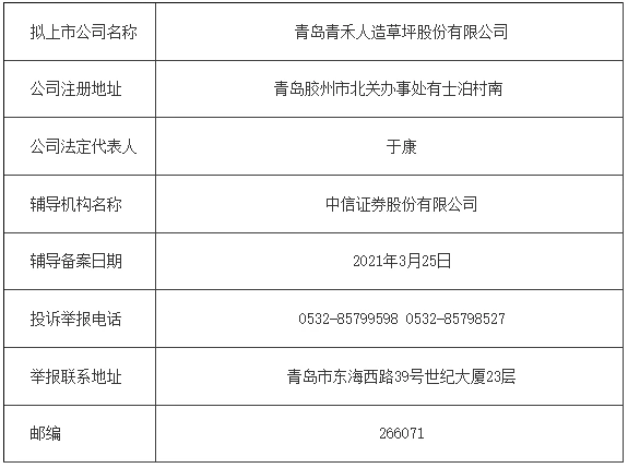 3月25日,青岛青禾人造草坪股份有限公司(以下简称“青岛青禾”)在青岛证监局进行辅导备案登记,开启A股IPO辅导之路。辅导机构为中信证券,青松资本已于2020年底对项目进行投资。