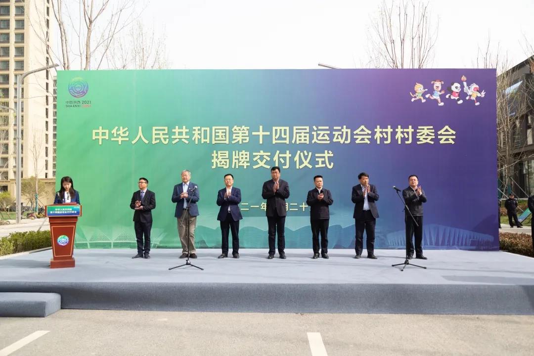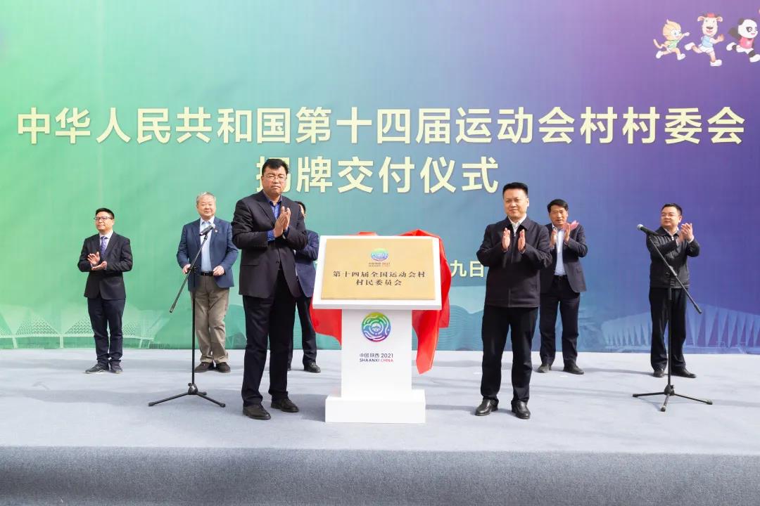 3月29日上午,中华人民共和国第十四届运动会村村委会在西安国际港务区正式揭牌,这标志着西安全运村的建设施工完成,全面转向设备安装、功能实现阶段,为全运村的正式开村入住奠定了坚实基础。
