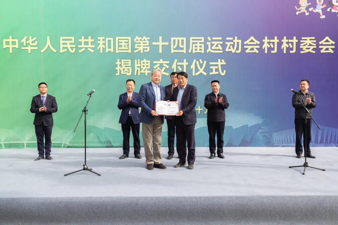 西安市委常委、常务副市长,十四运会组委会执行副秘书长、西安市执委会常务副主任玉苏甫江,陕西省人民政府督查专员、十四运会组委会办公室驻会副主任吴鹏翔共同为全运村村委会揭牌。