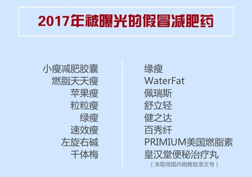 从早些年算起,从前捆绑着各路明星营销,在卫视广告中频频喊着洗脑台词的减肥产品接连被抵制整顿,类似的概念骗局也一个接一个地泡沫消散。据不完全统计,仅在2017年被曝光的劣质减肥药就达到16种,其中范冰冰代言的“绿瘦”,血洗电视购物频道的“左旋右碱”便赫然在列。