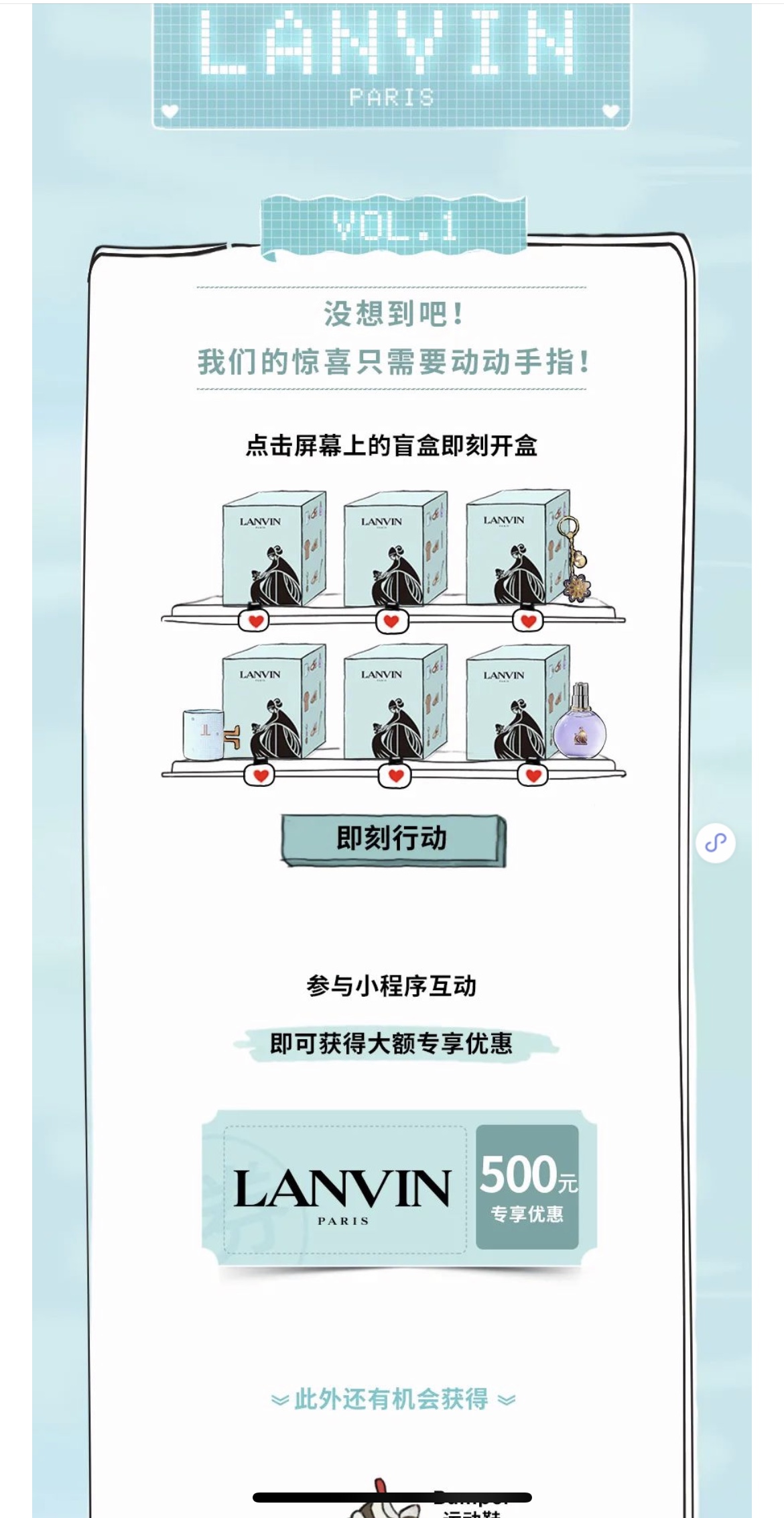 根据《南华早报》报道,LANVIN这场盲盒互动游戏在一个月内吸引了5万个玩家参与,是品牌微信公众号文章日常平均阅读量的五倍。