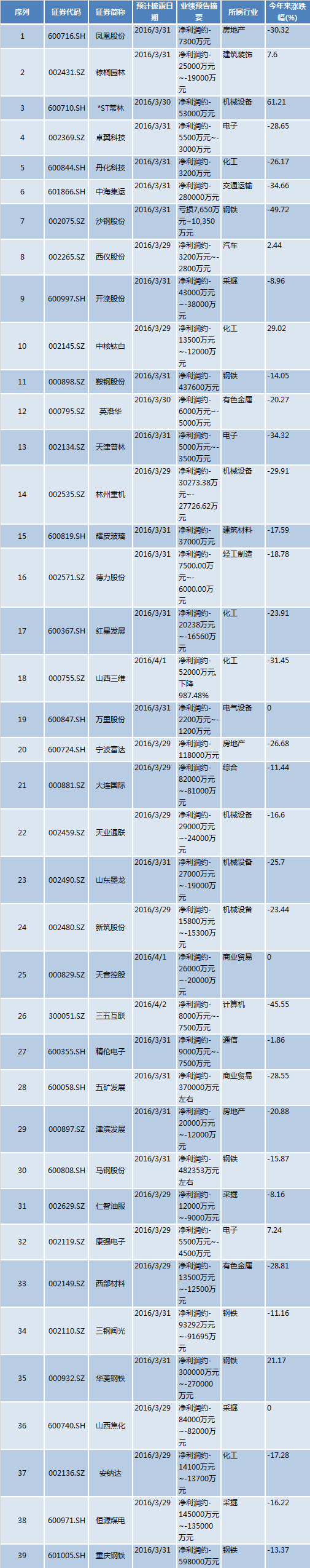 本周拟披露2015年年报业绩预亏的公司: