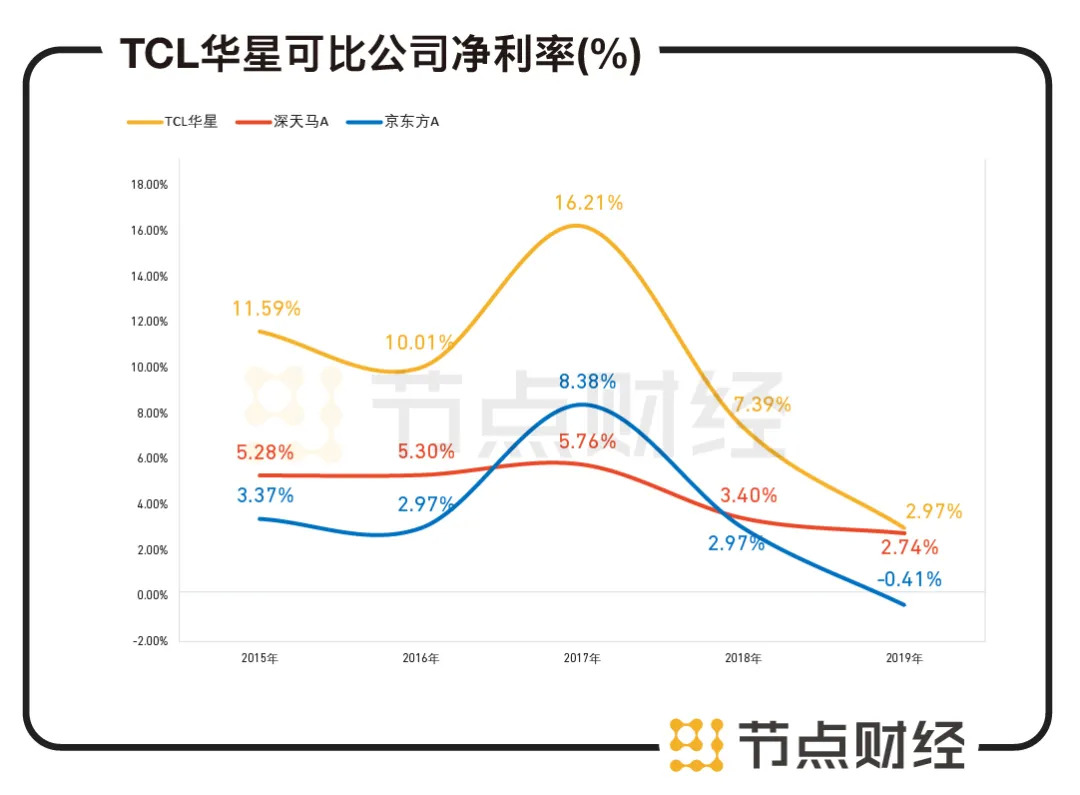 “覆巢之下,焉有完卵”。TCL华星当年净利润9.64亿元,同比下降58.5%,净利率下探至2.97%。