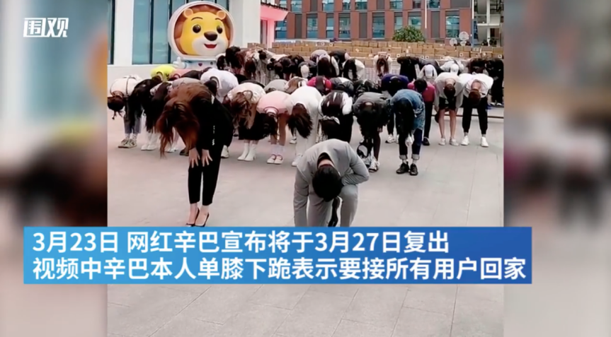 “昔日网红辛巴被封号 60 天后单膝下跪高调复出,你怎么看?”