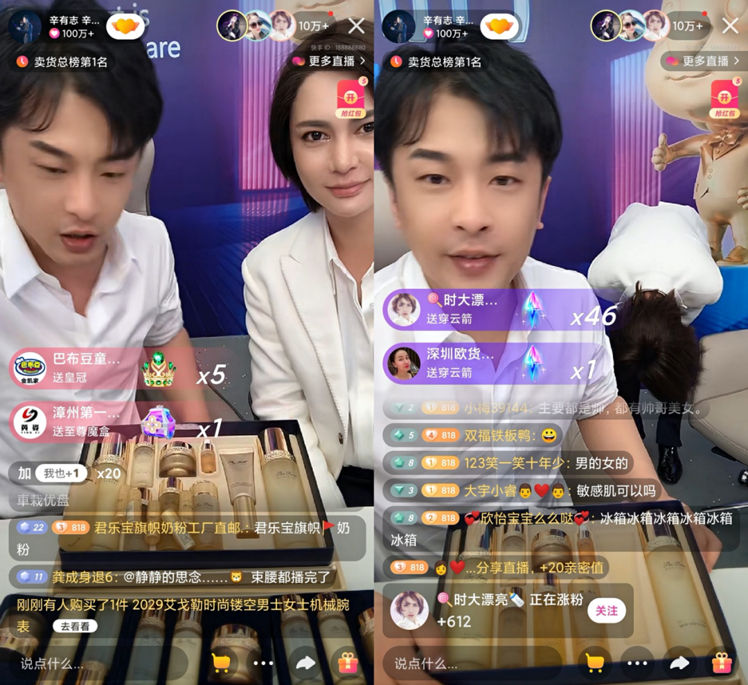 在介绍起不大擅长的护肤品成分时,辛巴会直接将话语权交给团队其他主播。例如,时大漂亮负责介绍了欧惠护肤品套装的新老版本、隶属集团等生产信息,辛巴仅在一旁帮腔,“用完赠品之后,将正装卖给别人,回本了,划算”。