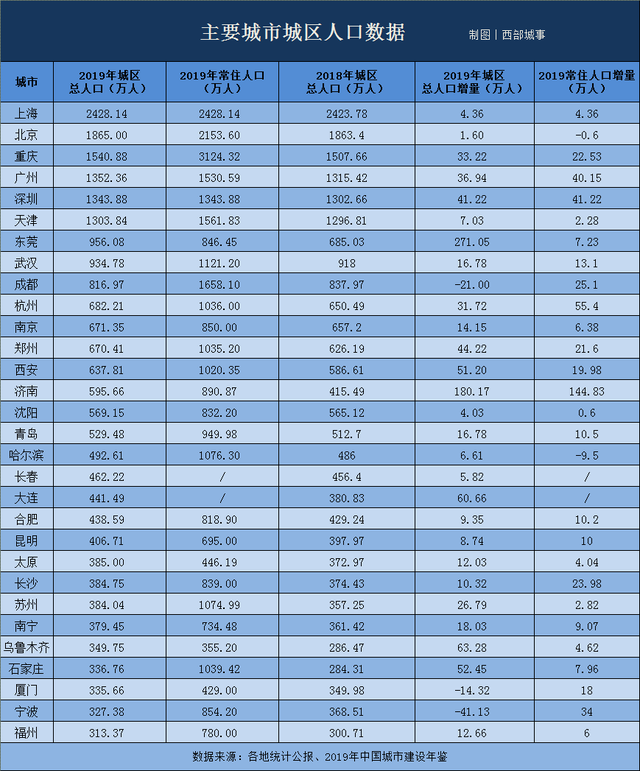 至于特大城市,标准为城区常住人口500—1000万人,按照2019年年鉴,共有11个,分别是东莞、武汉、成都、杭州、南京、郑州、西安、济南、沈阳、青岛、苏州。