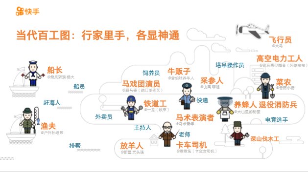 在2018年快手的内容报告中,快手是这么描述他的内容创作者:他们来自生活中的各行各业,没有华美的表面,也没有成熟的包装,用镜头记录着属于普通人最伟大的生活日常。他们能够生活在北京上海、二三线城市或是小镇乡村,内容有专业知识也有兴味分享。