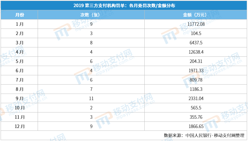 和2019年一样,2020年全年各月均有支付机构罚单产生。
