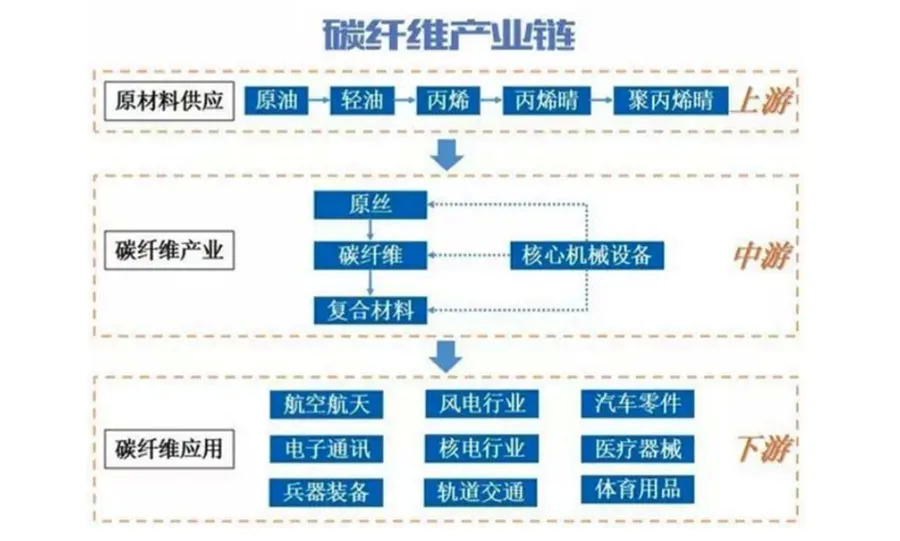 复合材料的原材料主要是化工和冶金等常规原料,其发展主要依赖于技术创新突破,以碳纤维为例就是原丝、碳纤维、复合材料及其制备机械技术。一个地区复合材料产业的发展壮大,主要依靠具有研发优势的龙头企业,延伸其上下游产业链,发挥自身资源优势和科研力量,形成产学研技术创新联盟,从而带动整个复合材料产业的发展。