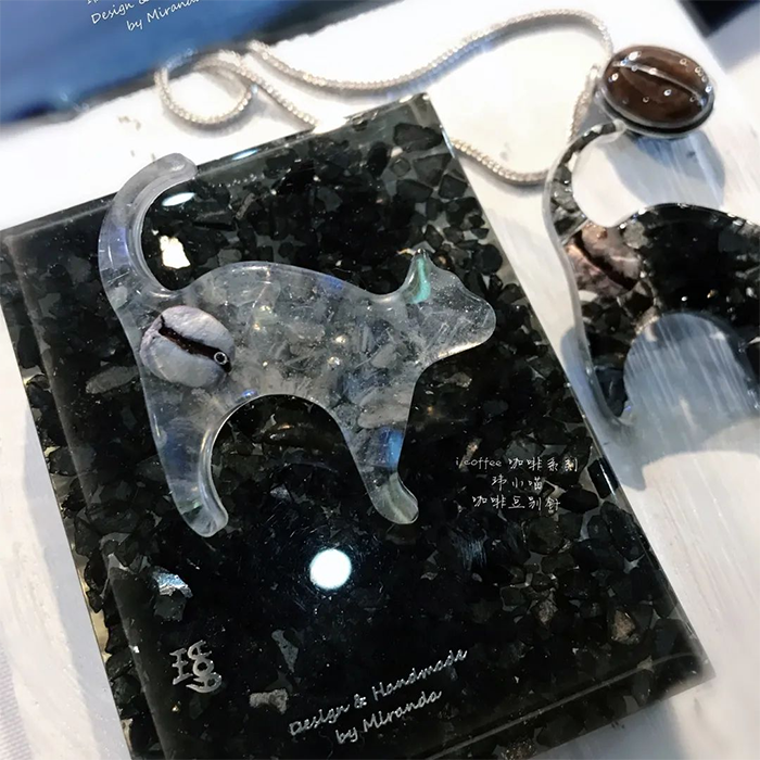 独立设计师、摄影师王玮玮 Miranda Wang的原创品牌,生活中那些源源不断的、过了赏味期的咖啡豆、萃取后被废弃的咖啡渣渣,那些伤害拾荒人双手的尖利碎物。将循环再设计理念融入人们的生活。“玮小喵系列咖啡豆胸针”将废弃材料设计成有趣的别针 希望拥有它的人有机会了解到“猫屎咖啡”产业链条下遭受伤害的小动物“麝香猫”,希望更多的人关注、关爱小动物。
