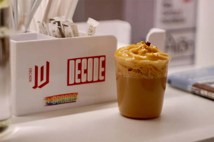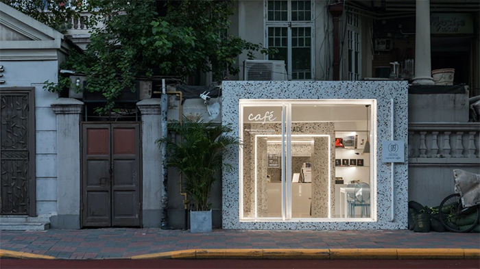 DECADE是一家坐落于天津百年法租界内的现代时髦的咖啡馆,老洋楼群里的水磨石礼物盒子。设计主要以白色橙色水磨石为主,整体明亮活泼。店内集合了音乐文化和时尚周边产品,风格多元,顾客体验丰富。