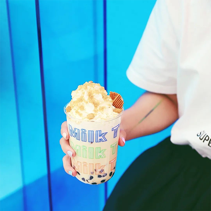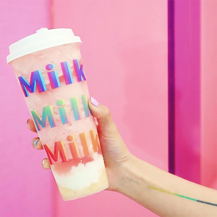 “让喝奶变得更酷”一心为让喝牛奶这件普通的生活习惯焕发年轻,动感,新创意。Milk T是2020年8月在北京本土全新诞生的特调饮品品牌,致力于原创鲜奶/酸奶,水果,0糖等健康好喝的特调饮品,同时Milk T独特的设计语言和品牌颜色,为产品和空间带来最高的识别度,融入视错觉,打造出迷幻炫彩的赛博朋克风。研发好喝我们一直在路上,通过每一杯饮品,将Milk T独特的体验带给顾客,让喝奶变得更酷。