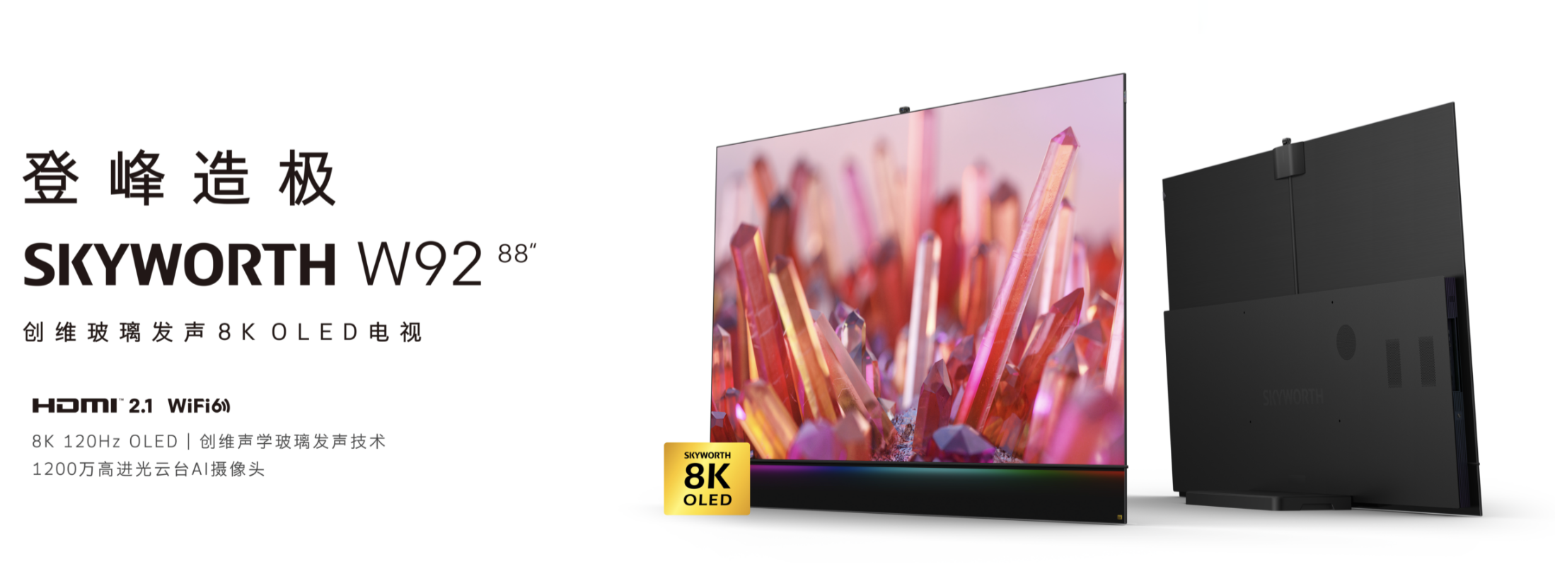 另一款产品则凸显了创维的高端化野心。创维W92是超大屏8K 120Hz OLED电视,屏幕尺寸为88英寸,售价约20万元。