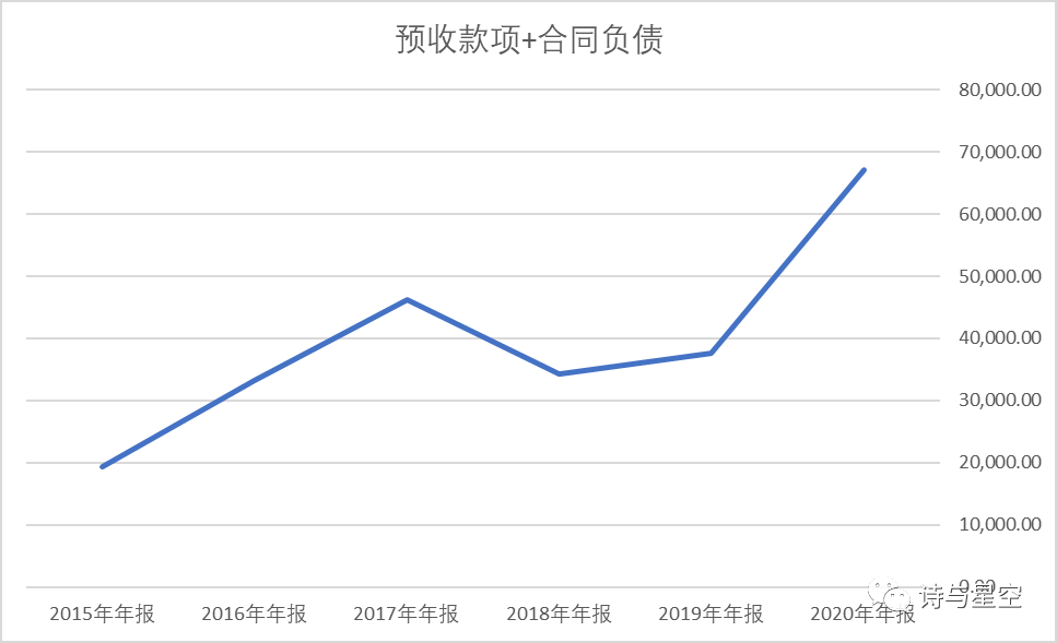 所谓合同负债是新会计准则的项目,基本约等于旧准则的预收款项,和往年的预收款项相比,公司2020年的合同负债直线上涨。
