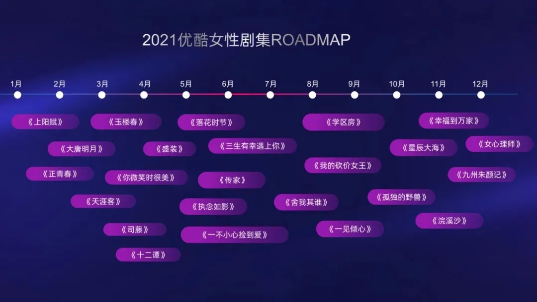 依据平台早前公布的预排播信息,除已经播出的民国爱情剧《十二谭》,优酷在Q2季度还会上线古装喜剧《玉楼春》、都市电竞剧《你微笑时很美》、都市时尚职场剧《盛装》、都市情感剧《三生有幸遇见你》、民国商业剧《传家》以及都市偶像剧《一不小心捡到爱》等。