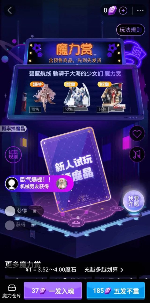 最近几年潮玩兴起,很多人知道盲盒。B站的魔力赏,则类似于一种线上盲盒抽取游戏,用户通过购买魔石开启盲盒,获得手办等物。