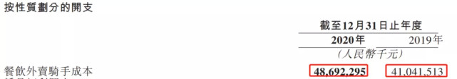 2020年,在美团平台上获得收入的骑手上升到了470万人,同比增长达17.88%。与之相比,美团在餐饮外卖骑手身上花费的成本,从2019年的410.42亿元上升至486.92亿元,同比增长达18.64%。从两项数据的增长速度来看,美团在单个外卖骑手身上所花费的成本没有太大变化。照此计算,2020年美团平均在每个外卖骑手身上花费的成本约为10360元。