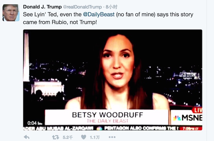 至于特朗普本人,他要么没意识到要么压根并不在意,当晚仍在跟克鲁兹对掐,声称后者日前被曝外遇一事与他无关。