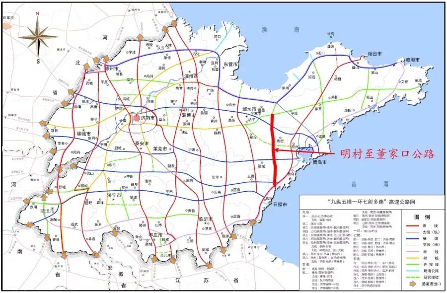 明董高速是山东高速公路网“九纵五横一环七射多连”中“连四”线莱州至董家口公路的主要组成部分,也是2021年省重大储备类项目。作为潍日高速和沈海高速的加密线路,能有效分解潍日高速和沈海高速过境交通压力,可进一步改善山东半岛高速公路网布局。