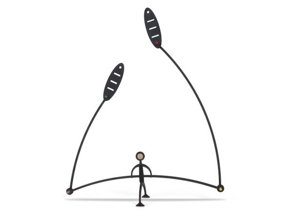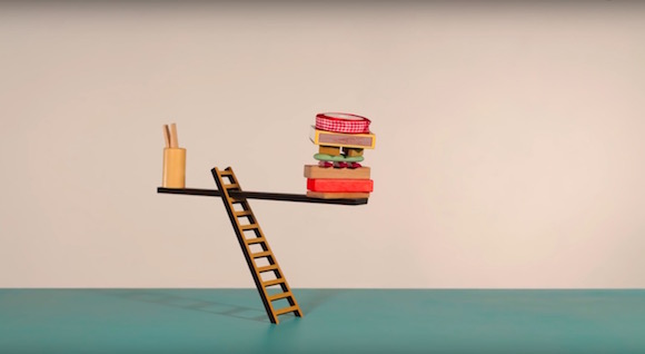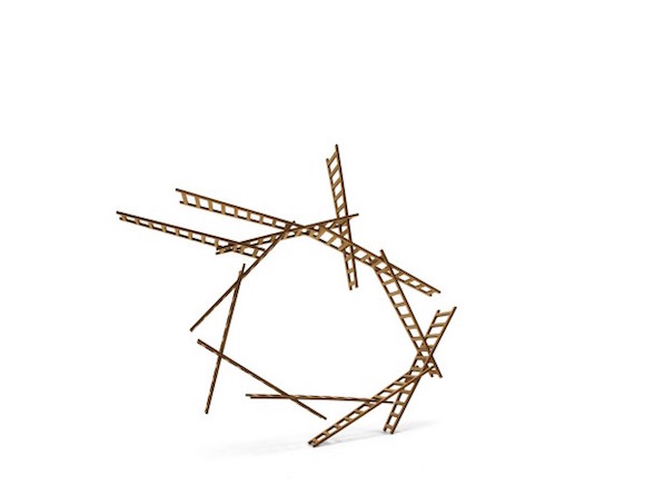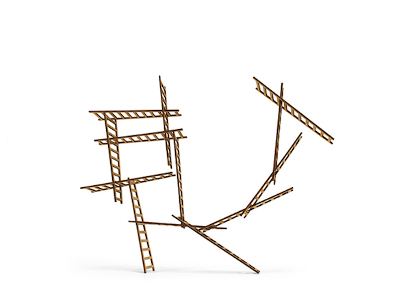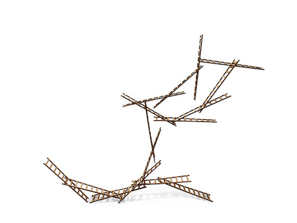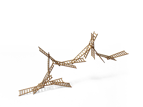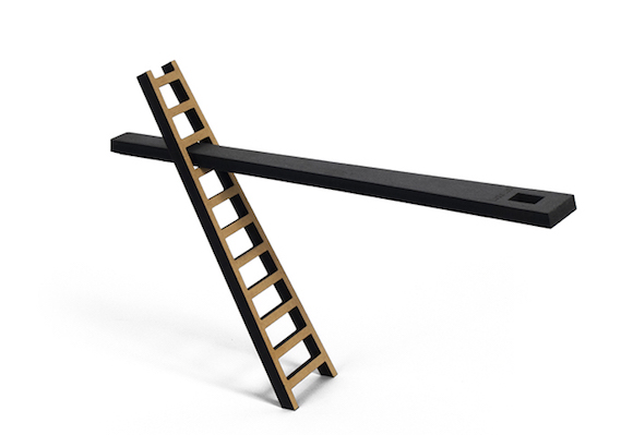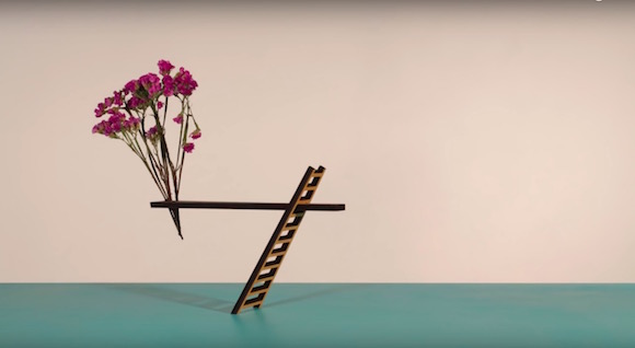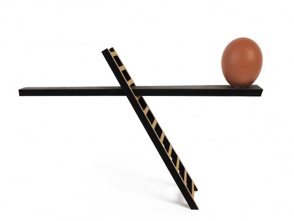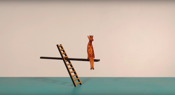 看起来只是一个梯子和一块木条而已,但只要找对角度就能达到微妙的平衡,虽然这个姿势是有点撩人: