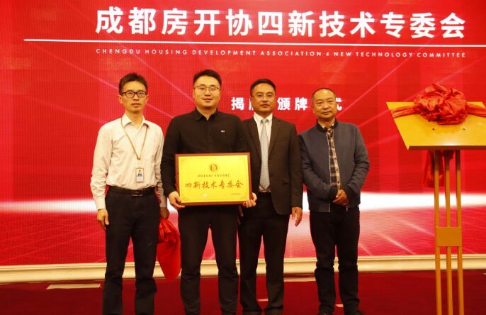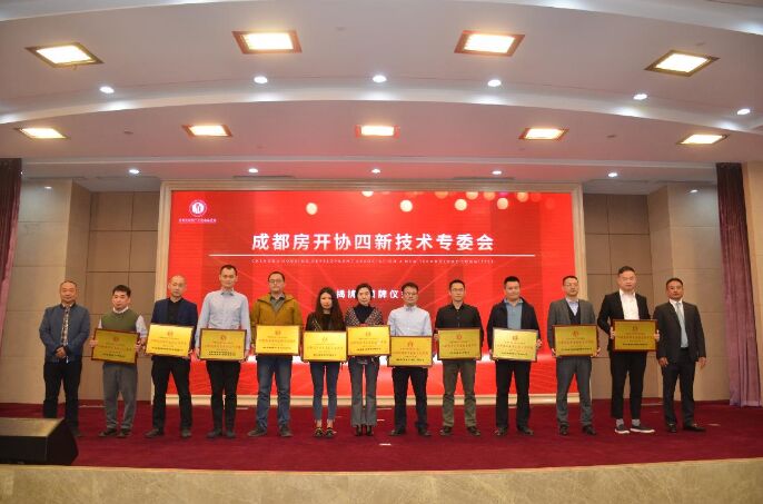 本次活动分为3个部分:首先举行的是成都市房地产开发企业协会四新技术专委会成立揭牌仪式及成员单位颁牌仪式;