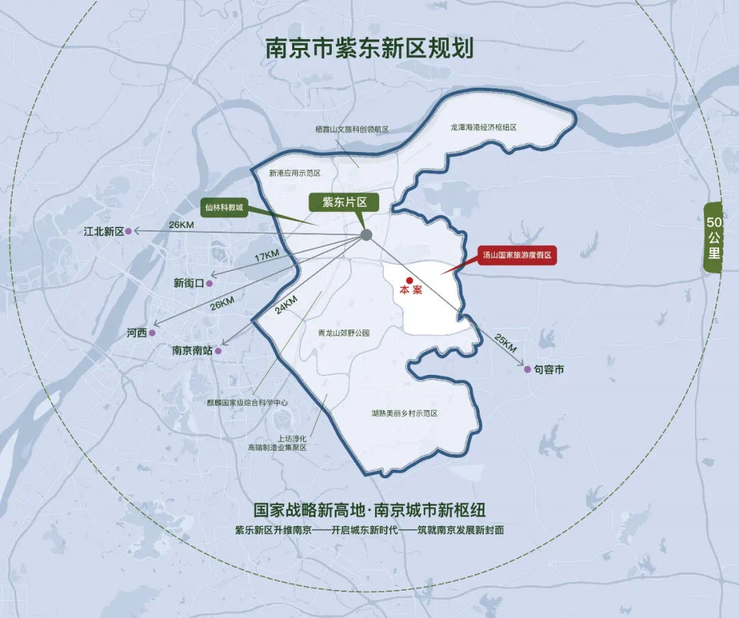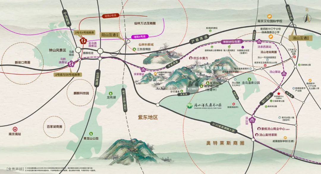 项目除了自带的配置规划完善外,所处的区位跟地段也是目前南京发展的重中之重,未来可期。汤山温泉康养小镇位于紫东新区的汤山新城,从城市规划发展角度来看,汤山温泉康养小镇的发展是大势所趋。