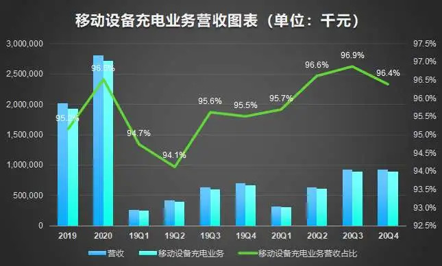 收入来源单一,超九成收入来自移动设备充电业务