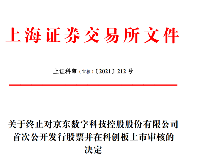 4月2日,上交所科创板上市委披露《关于终止对京东数字科技控股股份有限公司首次公开发行股票并在科创板上市审核的决定》,称终止京东数字科技控股股份有限公司科创板上市申请。