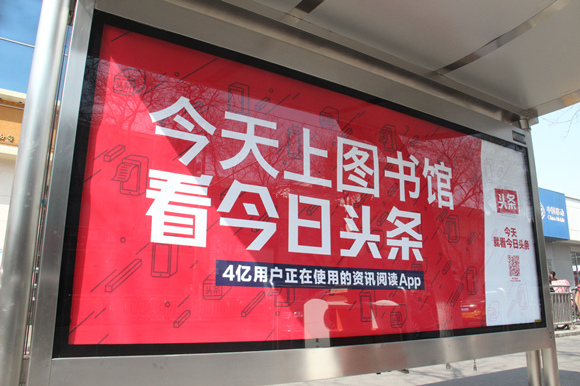 最近一段时间,在北上广深等14个城市的人们一觉醒来,发现简直被一大波奇怪的红色广告包围了:当你在公交站等车,站台上写着“今天不睡了起来嗨 看今日头条”“今天上图书馆 看今日头条”;终于挤上地铁,满眼看到的是“今天车上好多人 看今日头条”“今天星期一 看今日头条”;来到公司电梯,还有“今天上班路上 看今日头条”“今天下班路上 看今日头条”;甚至还有更加无厘头的“今天哈哈哈 看今日头条”“今天呵呵呵 看今日头条”……