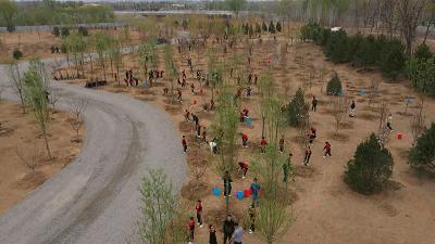 好雨知时节,当春乃发生。当天,北京飘起蒙蒙细雨,为植树增添了一抹春意。