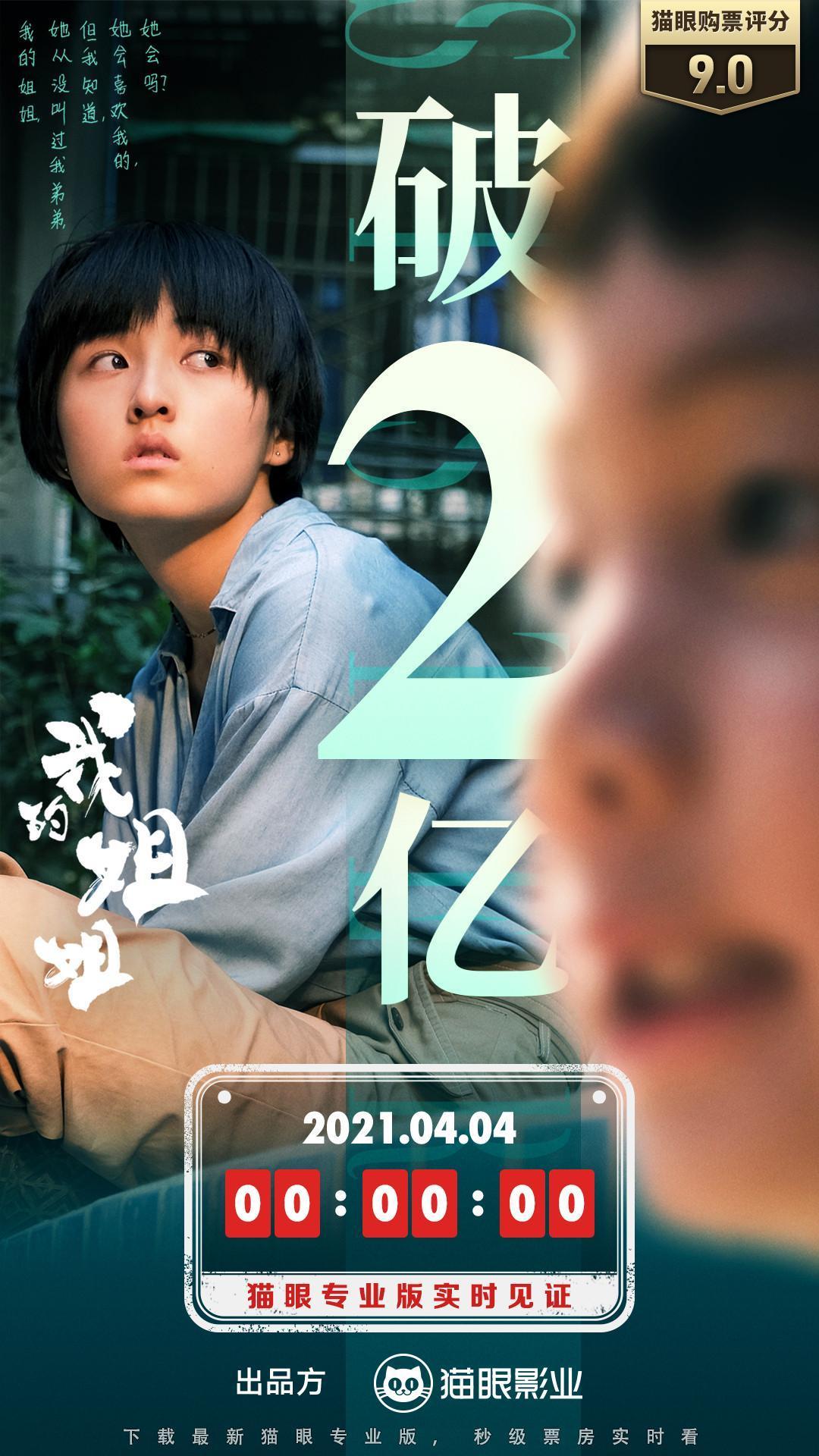 据@猫眼专业版 消息,截至4月4日零时,电影《我的姐姐》总票房破2亿。