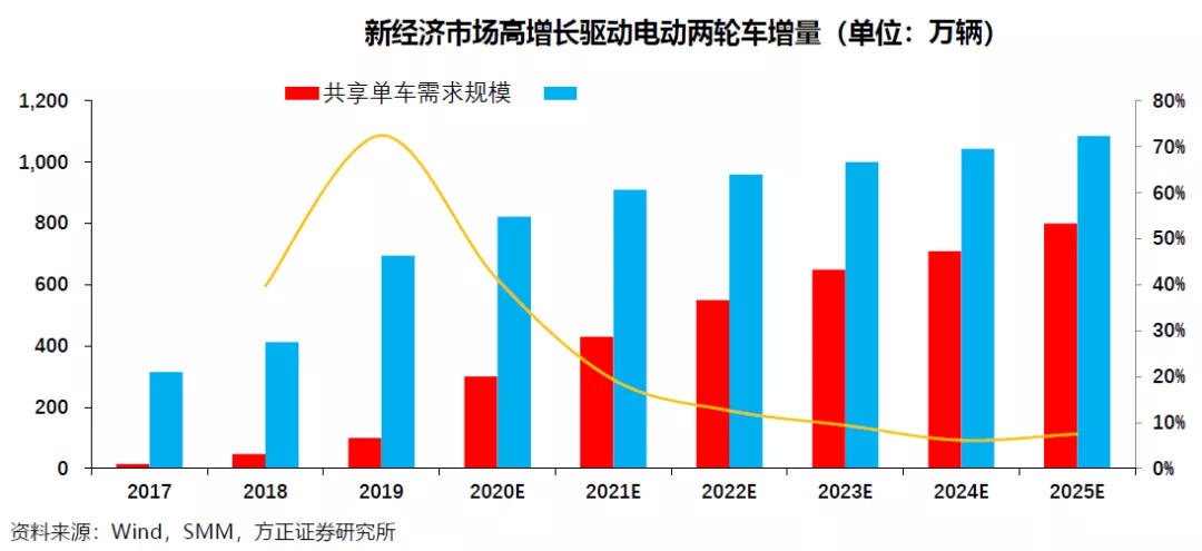 真正的市场新增,来自于共享单车及外卖车辆需求。