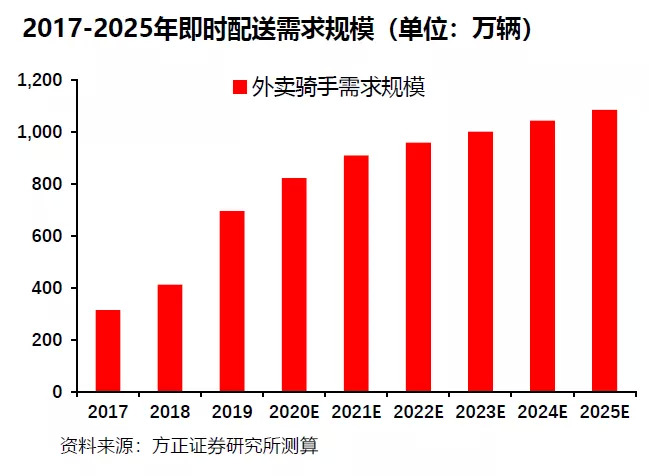 外卖与同城业务的兴起,是电瓶车增量的新来源。