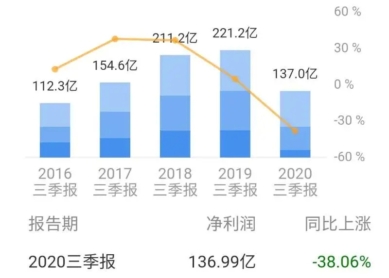 据公开数据显示,格力电器2020年前三季度实现营业收入1258.89亿元,同比下降18.80%;实现净利润136.99亿元,同比下降38.06%;毛利率为23.37%,同比降低6.79个百分点;经营活动产生的现金流同比下滑90.74%。