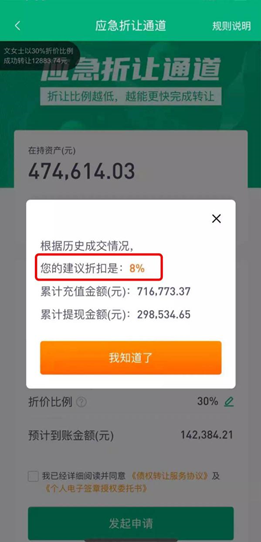 漫长的兑付时间消耗了投资人押注平台全部回款的期望,加上在兑付过程中,投资人议价权利有限,于是个别投资人选择打折兑付。