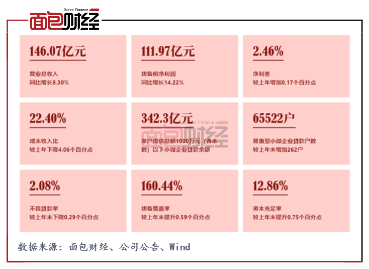 营收稳定增长,成本收入比下降,拨备前利润增长14.22%