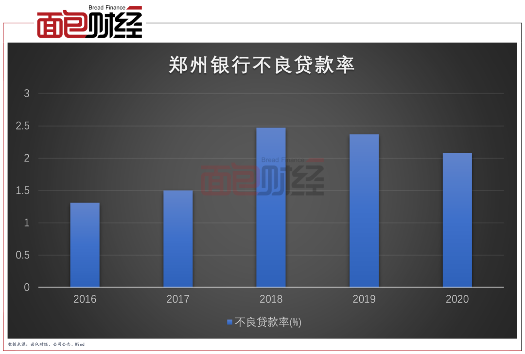 数据显示,郑州银行不良率连续三年出现下降,截至2020年末,该行不良贷款率较上年末下降0.29个百分点至2.08%。