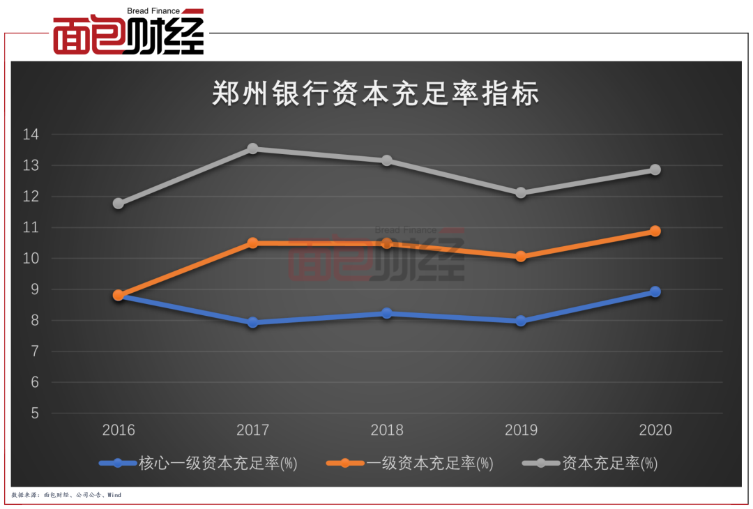 郑州银行的各项资本充足率指标在2020年均有提升。截至2020年末,该行的资本充足率为12.86%,较上年末提升0.75个百分点;一级资本充足率为10.87%,较上年末提升0.82个百分点;核心一级资本充足率为8.92%,较上年末提升0.94个百分点。