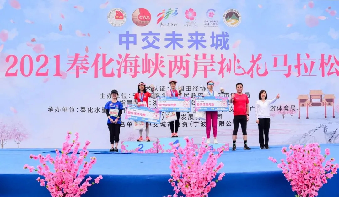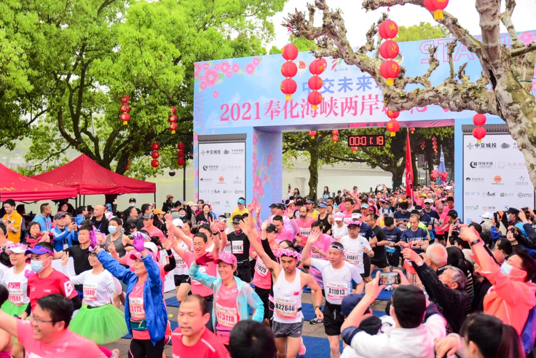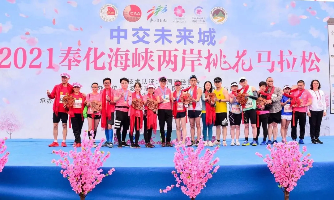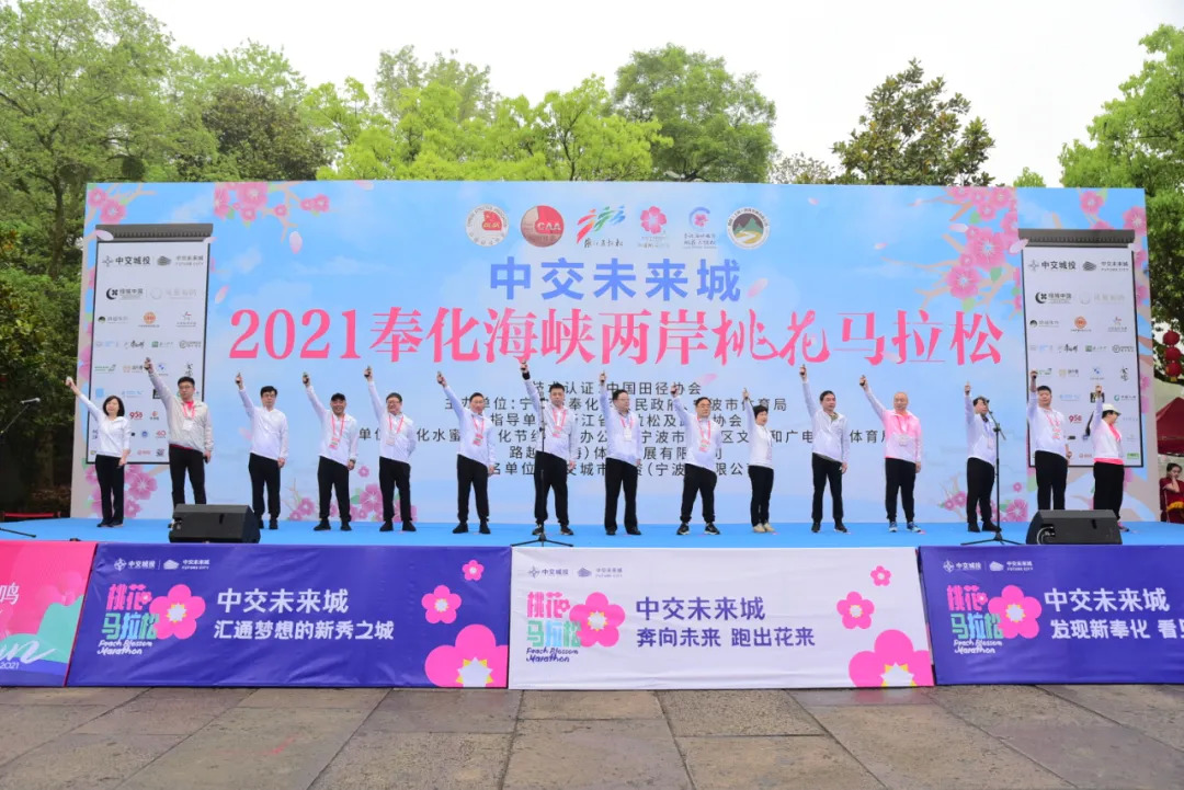 4月3日,2021奉化海峡两岸桃花马拉松在宁波市奉化区剡江河畔浪漫开跑,这也是疫情发生以来浙江省内今年首次举行的马拉松赛事,吸引了英国、美国、荷兰、加拿大等14个国家及国内34个省市自治区的8000多名跑步爱好者参加。